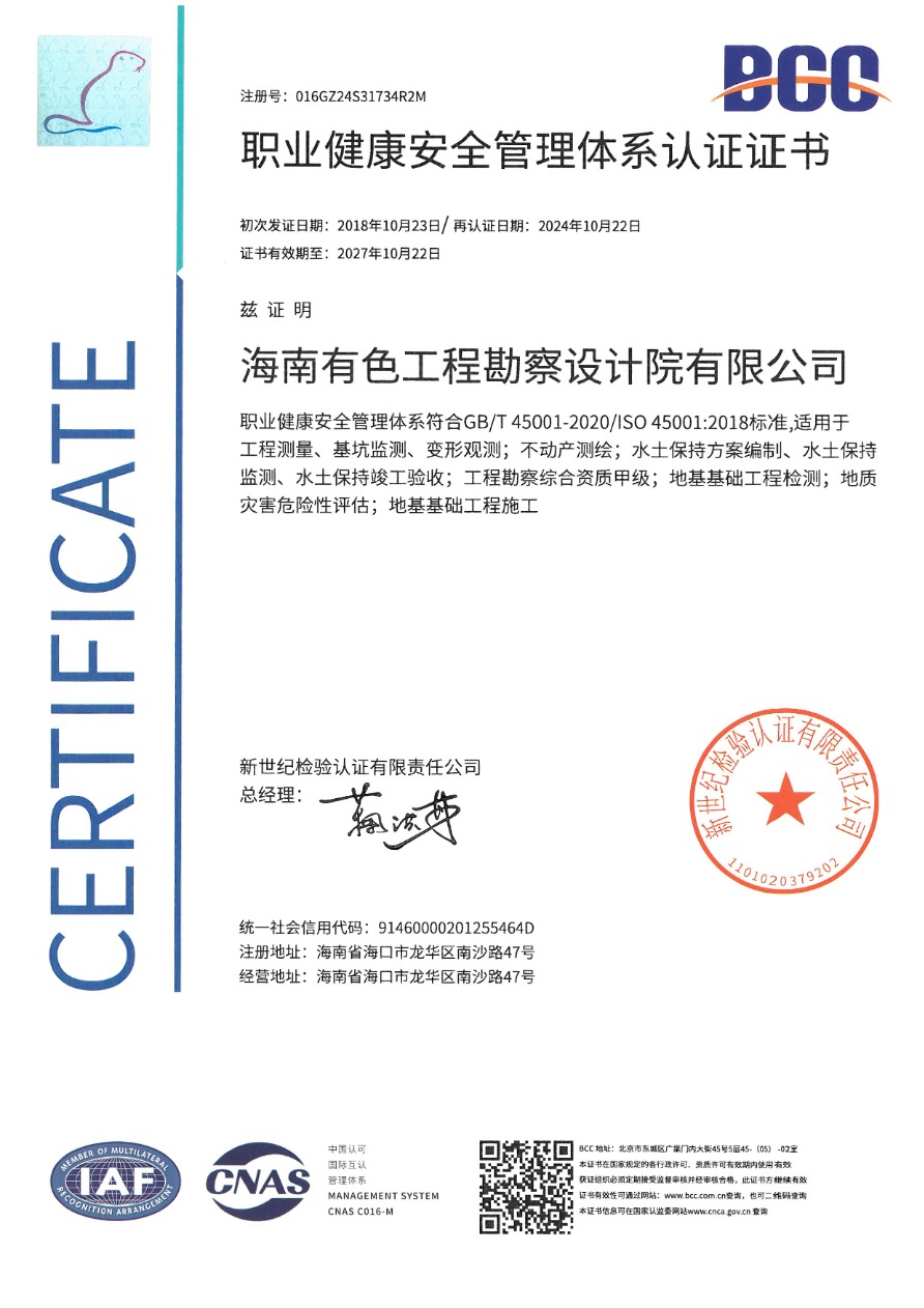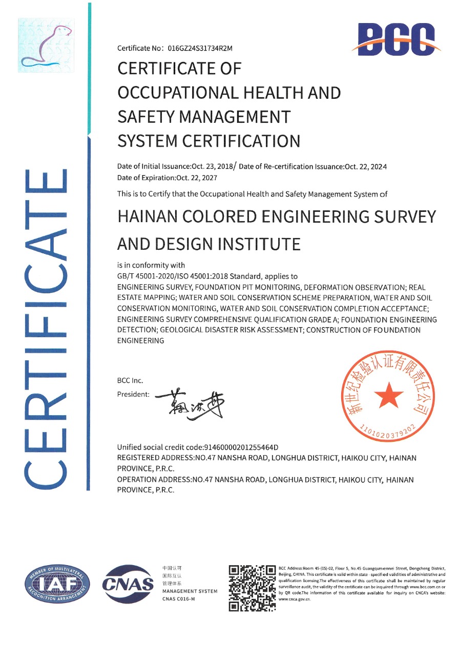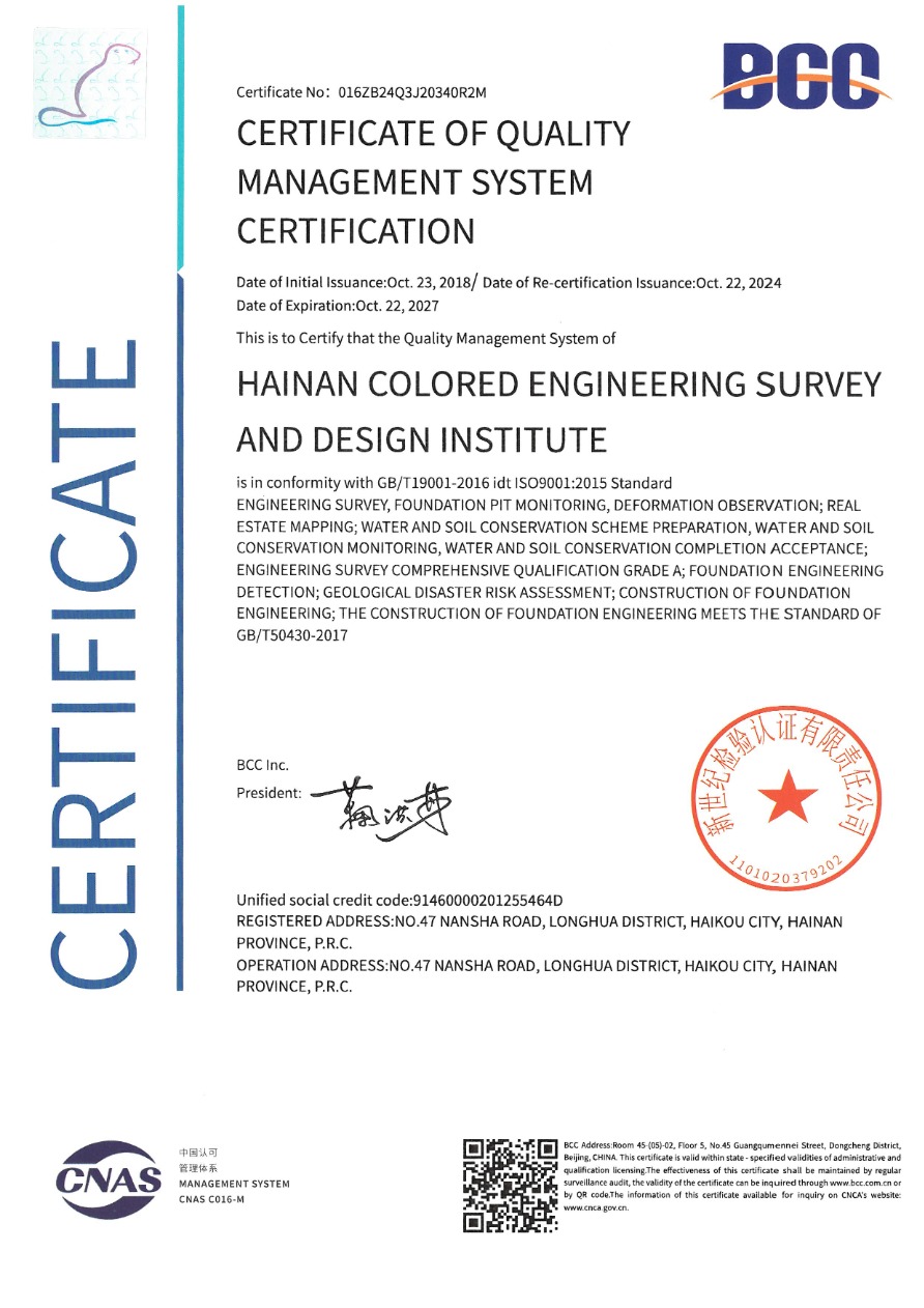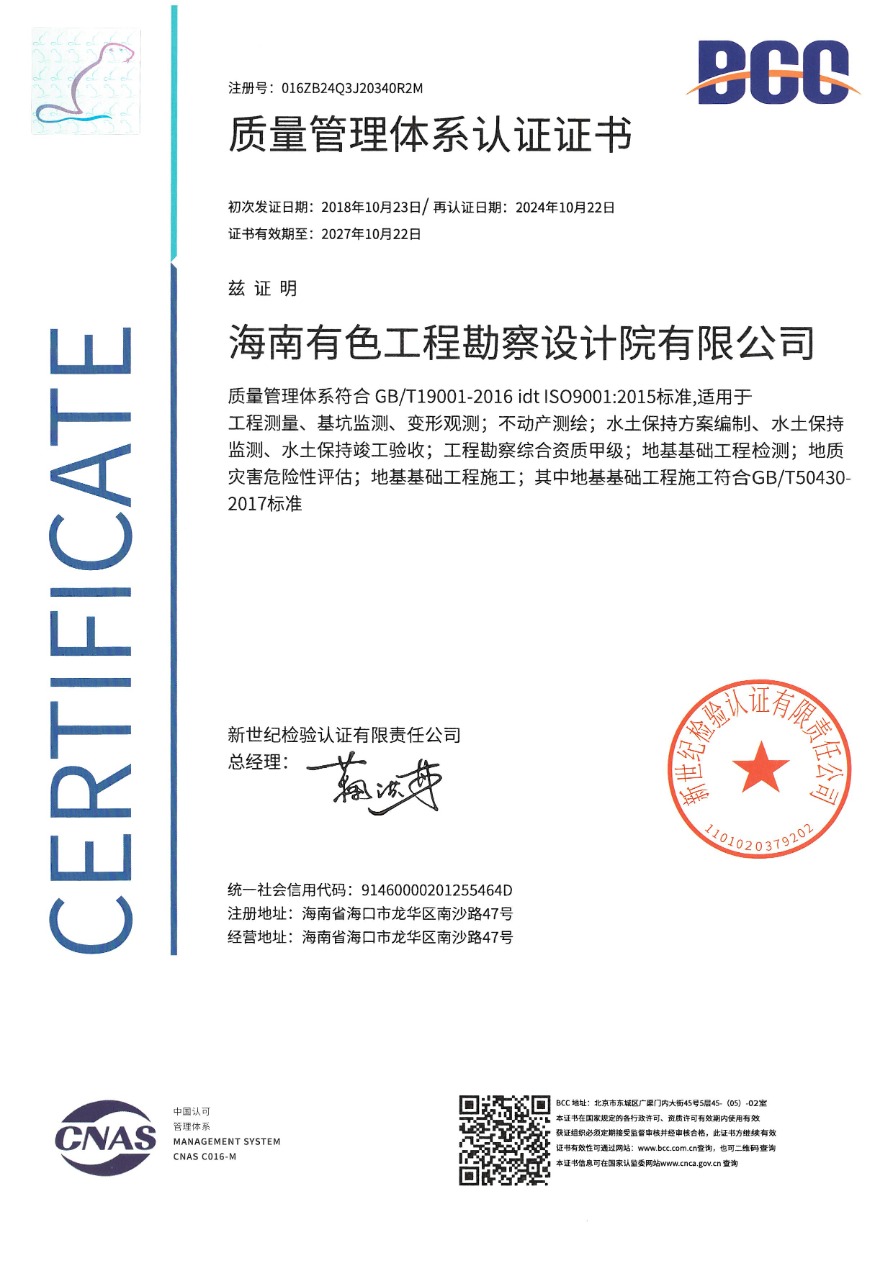 海南有色工程勘察设计院公司QJES证书-三大体系
