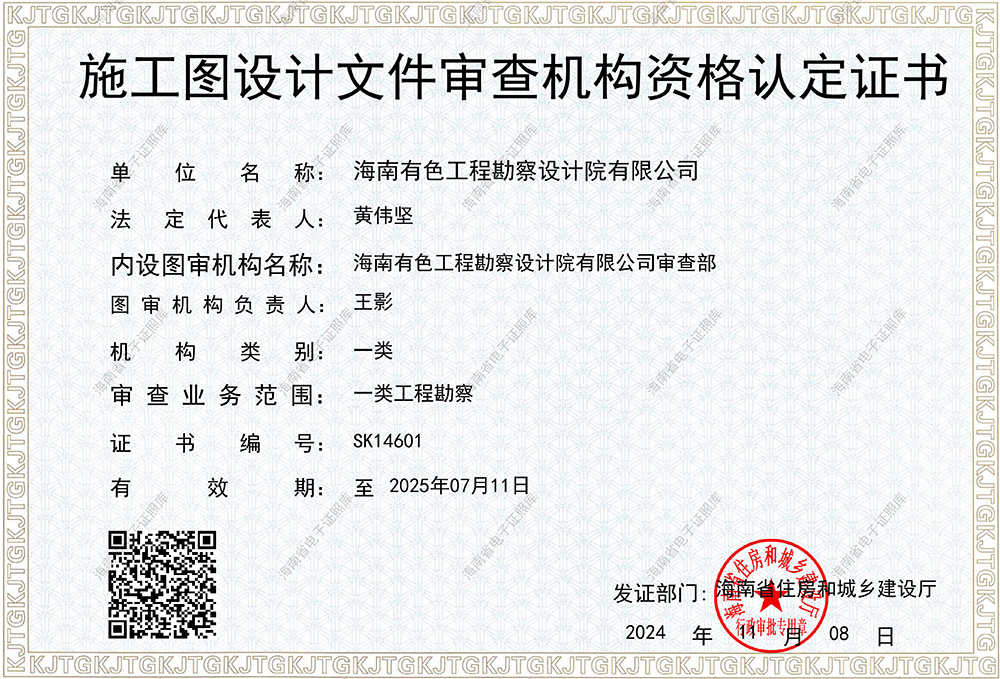 施工图设计文件审查机构资格认定证书